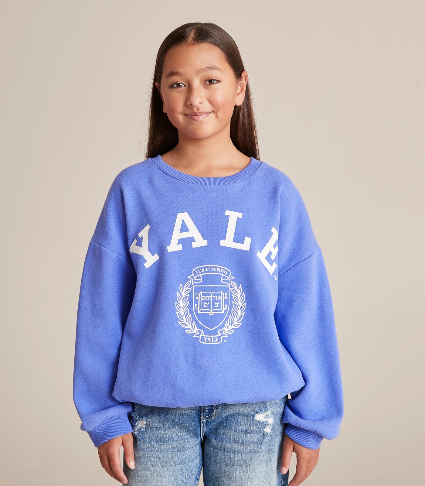 With soft fleece lining for extra warmth and comfort, a ribbed crew neck and large print to chest comes the purple Yale Fleece Jumper.