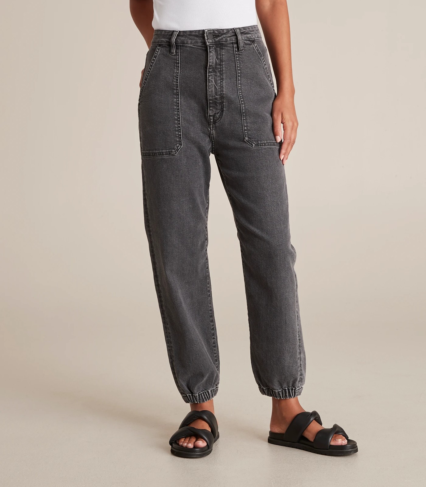 A relaxed pair of pants that are perfect for everyday wear, the Yasmin elasticated hem denim jogger pants feature a strucutred waistband, straight leg cut, pockets for all of your essentials and elastic cuffs for the jogger look.