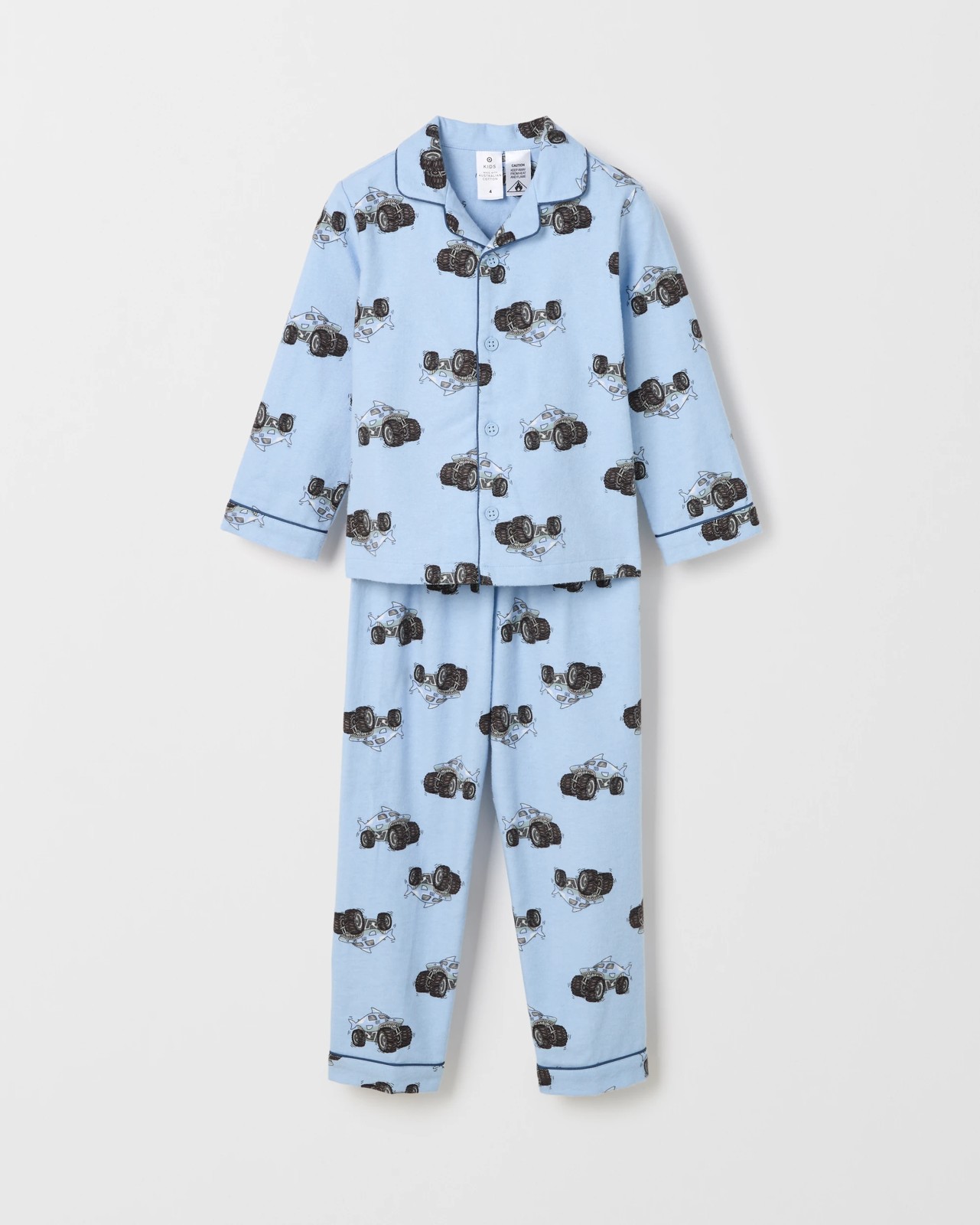 Younger Boys Australian Cotton Long Sleeve Top & Long Length Pants Flannel Pyjama Set - Shark Monster Truck