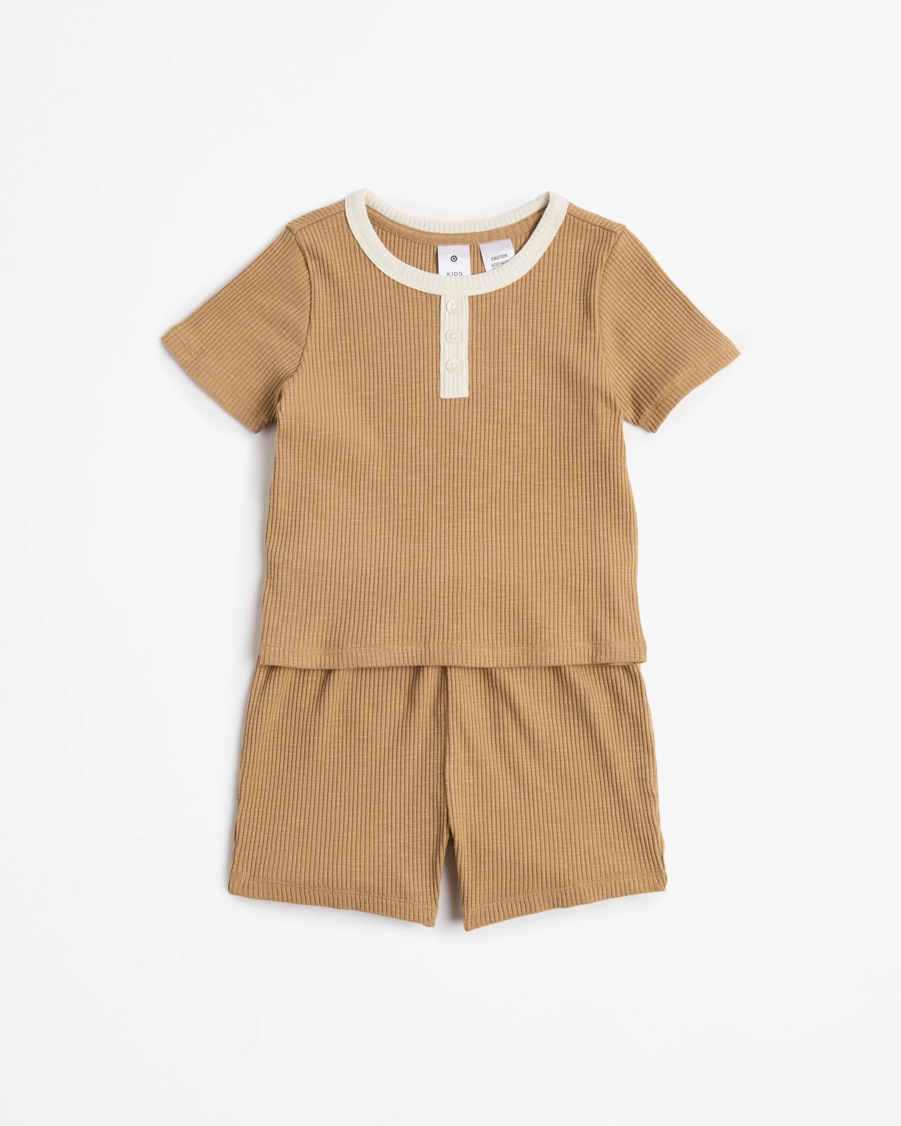 Younger Boys Henley Slub Rib Knit Pyjama Set - Brown