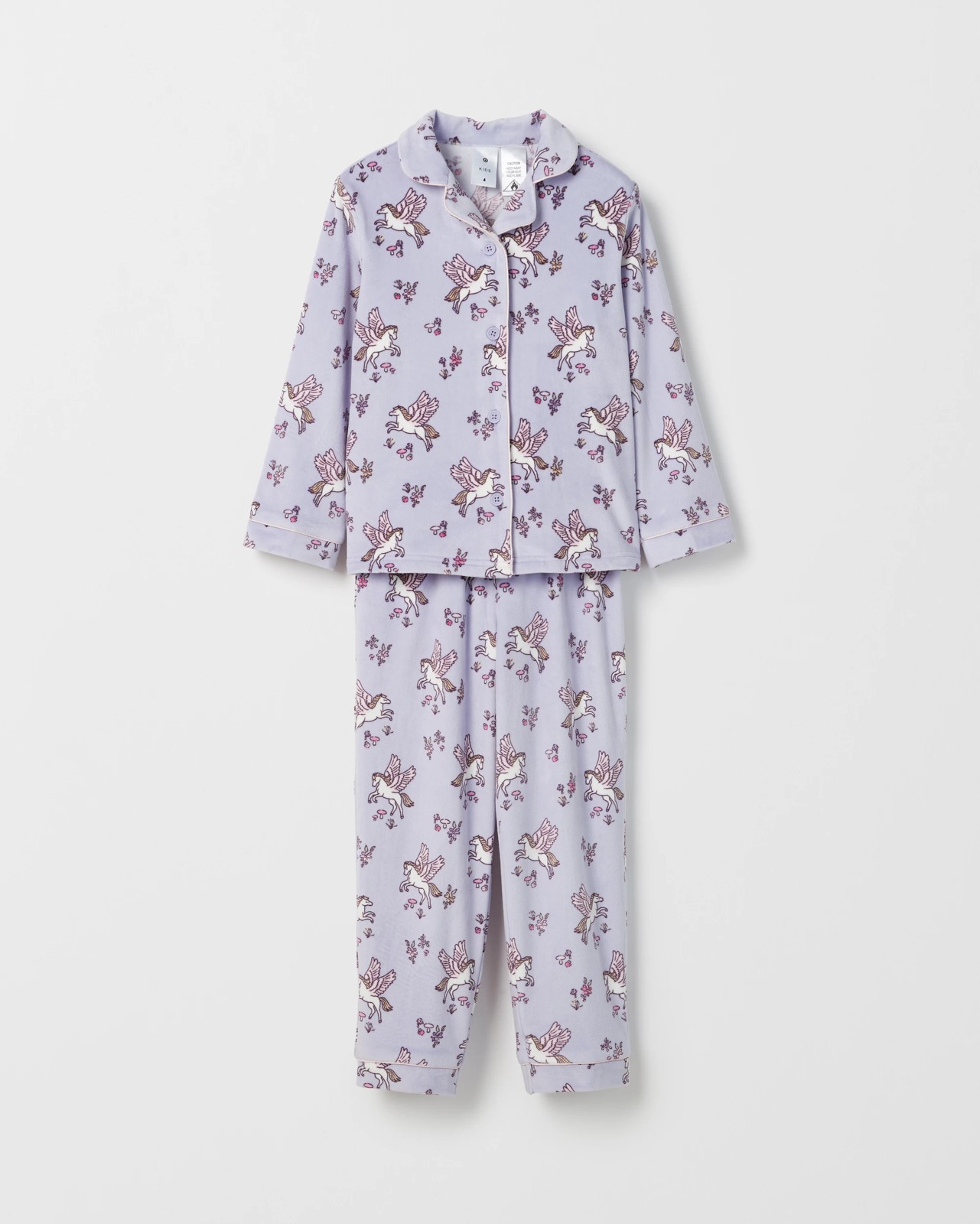 Younger Girls Button Through Fleece Pyjama Set - Unicorn Pegasus