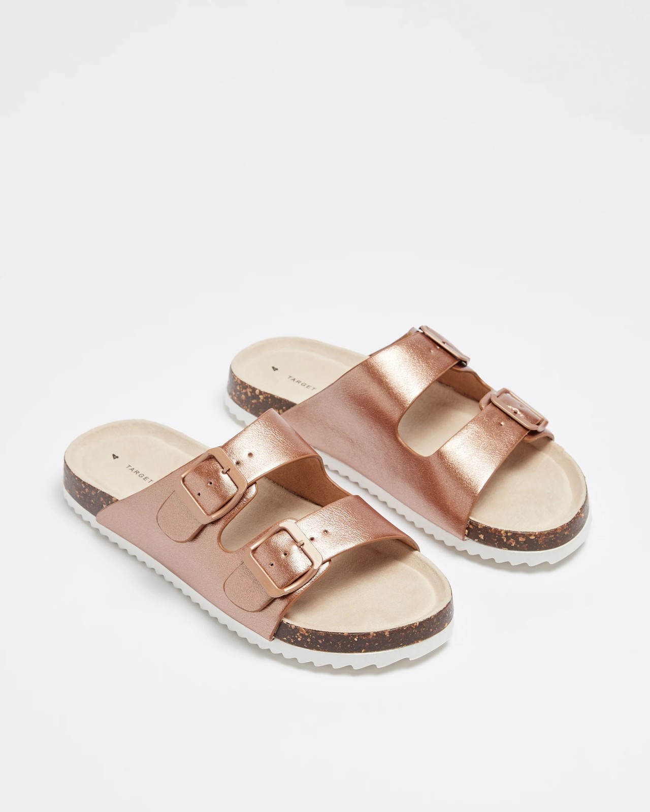 The perfect slip on shoe for the warmer months, the youth moulded cork sandals are made for everyday wear, have thick double straps across the top of the foot with buckle closure, a moulded cork inner sole and non-slip soles.