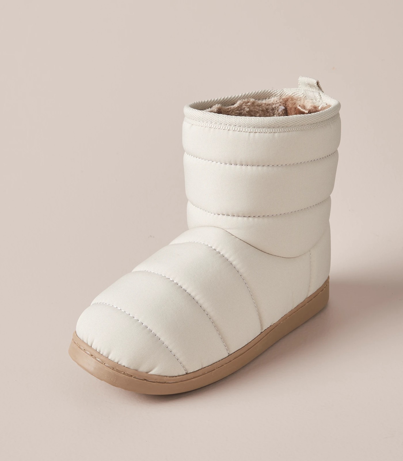 These warm slipper boots will keep your young child comfortable this winter. They feature a faux-fur lining, a flexible, slip resistant sole and an all over quilted design.