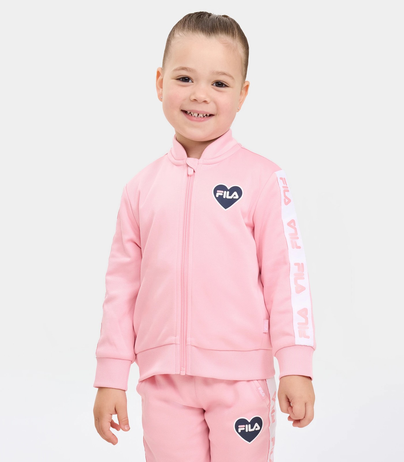 Go the distance in this Sierra jacket, made for young athletes on the move. No matter how much running around the day involves, your little one will stay comfortable thanks to our Polyester Tricot fabrication. Featuring a Fila heart print to the left chest, Fila woven taping to sleeves, and ribbing to the hem and sleeve cuffs. Effortlessly pair the Sierra jacket with the Sierra trackpant (sold separately) in a matching colourway for the complete look.