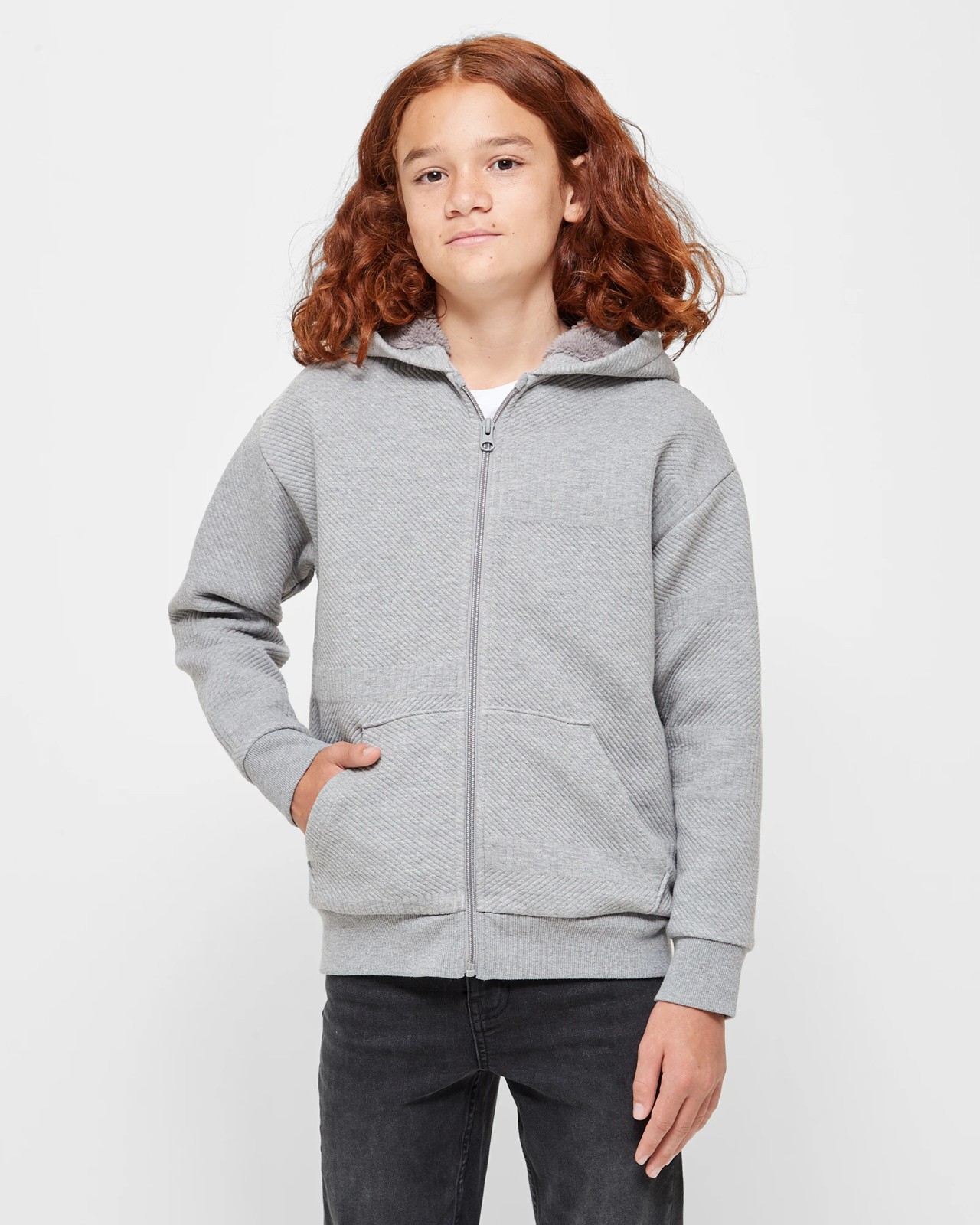 Imagine your little one snug and warm in our boys' Zip Thru Sherpa Hoodie. Made from textured fabric, this grey hoodie offers a regular fit and features a hood lined with plush Sherpa for that extra layer of cosy comfort. The long sleeves come with ribbed cuffs to keep the chill out, while the zip front and front kangaroo pocket add practicality and style. Perfect for adventures, this hoodie is a must-have addition to any young wardrobe. Ready to make this hoodie theirs? Don't wait – grab it today!