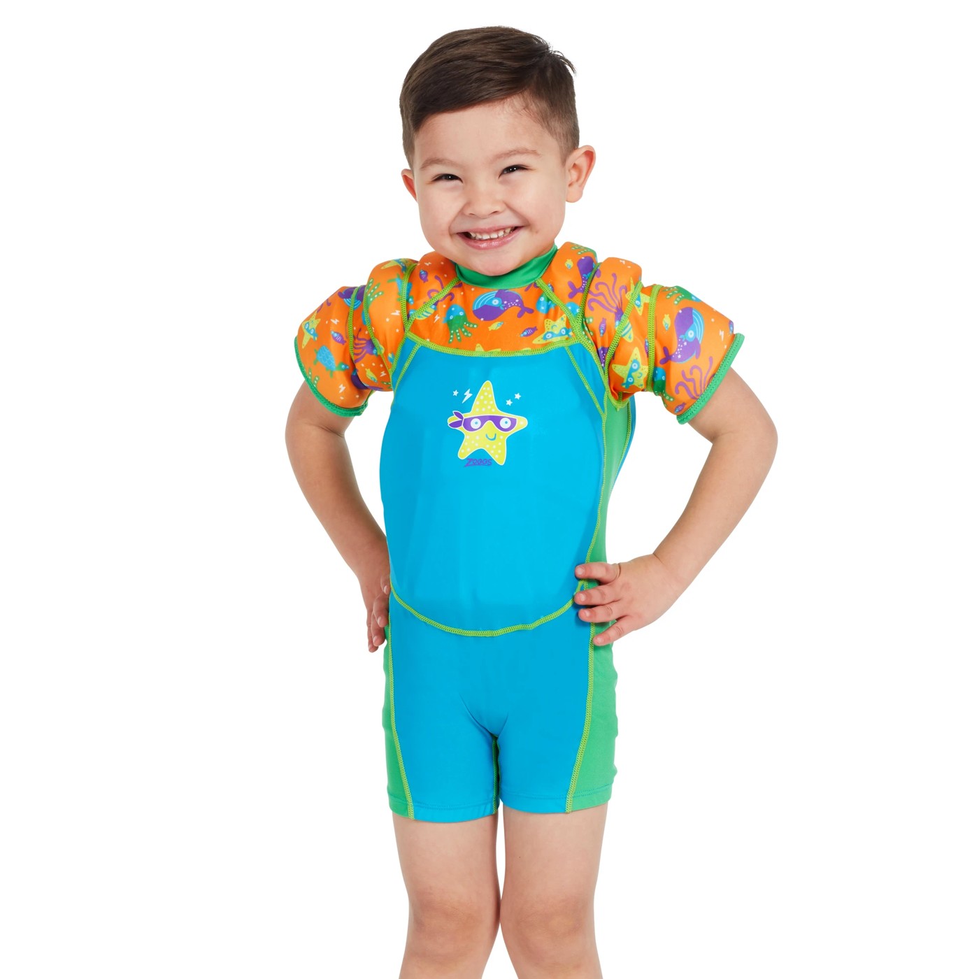 The Zoggs Water Wing Floatsuit is a flotation aid to assist little ones with learning how to be buoyant in water and use their arms and legs to move around.