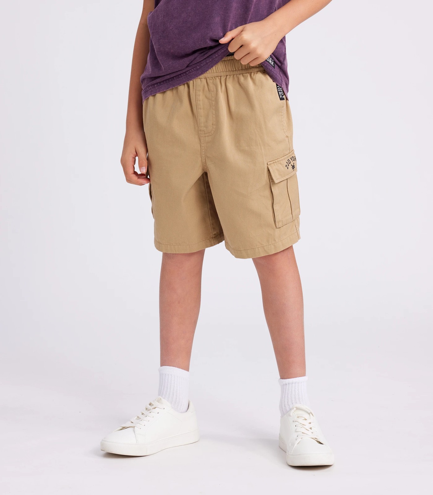 Upgrade his summer wardrobe with the Zoo York Dune Cargo Shorts. Crafted from 100% cotton, these shorts offer both style and comfort. With a trendy plastisol print on the pocket flap, these shorts are sure to make a statement. The elastic waistband and internal drawcord provide a secure and adjustable fit. Whether heading to the beach or a casual outing with friends, these shorts are a must-have. Don't miss out on the opportunity to elevate his fashion game.