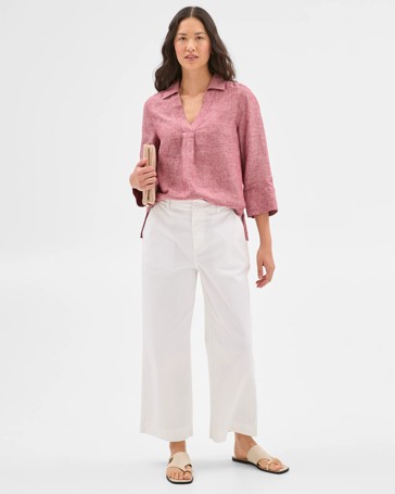 European Linen 3/4 Sleeve Popover Shirt