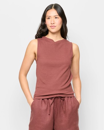 Linen Blend Sleeveless Tailored Top - Preview