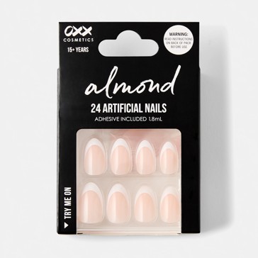 100 Pack Artificial Nails with Adhesive, Almond Shape, French Tip - OXX Cosmetics