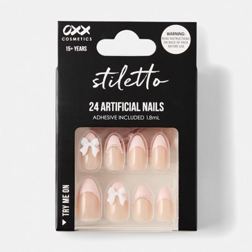 24 Pack Artificial Nails with Adhesive, Stiletto Shape, 3D Bow - OXX Cosmetics