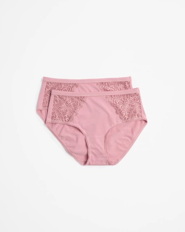 2 Pack Smooth Touch Lace Bonded Waist Midi Briefs
