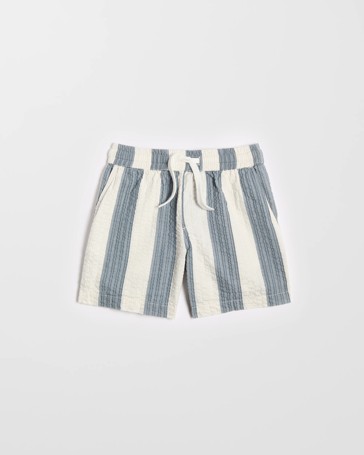 Cotton Linen Blend Textured Stripe Volley Shorts