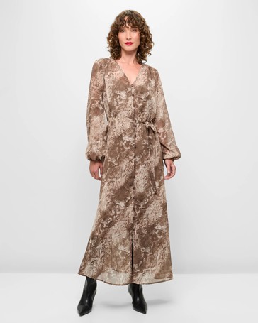 European Linen Blend Puff Sleeve Maxi Dress - Lily Loves