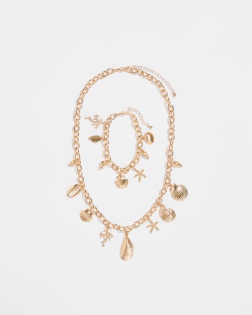 Shell Charm Necklace and Bracelet Set