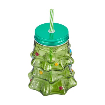 Christmas Tree Drink Jar and Straw - Anko