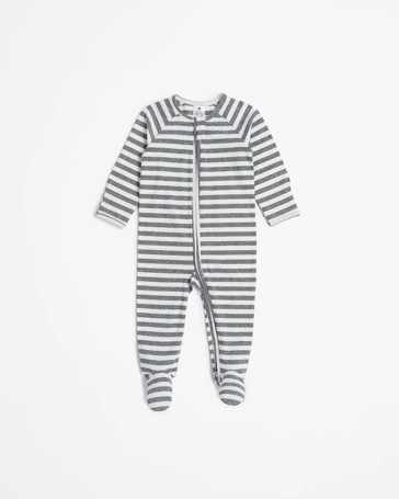 Baby Organic Cotton Print Zip Coverall - Black Stripe