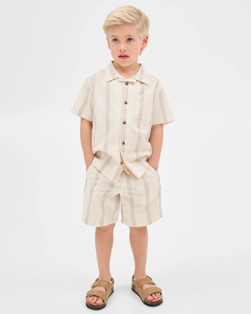 Cotton Linen Blend Textured Stripe Volley Shorts