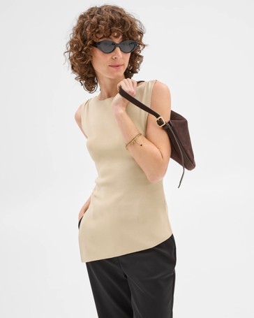 Sleeveless Asymmetrical Crepe Knit Top - Preview