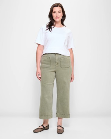 Plus Size Crop Length Wide Leg Stretch Twill Pants