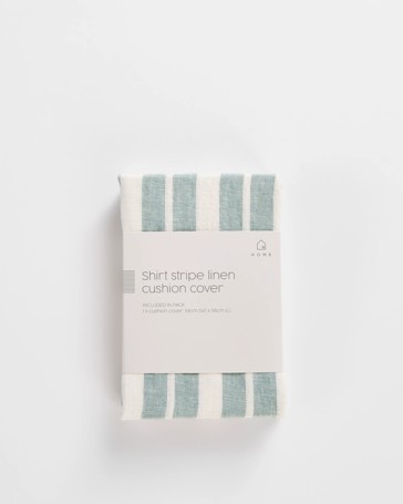 Shirt Stripe Linen Stripe Cushion - Stormy Sea