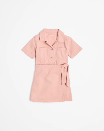 Younger Girls Shirred Denim Playsuit