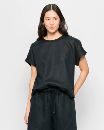 European Linen 3/4 Puff Sleeve Femme Popover Top