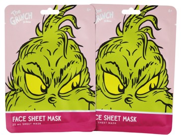 2 Pack Dr. Seuss' The Grinch Face Sheet Mask 25ml - Cucumber Scent