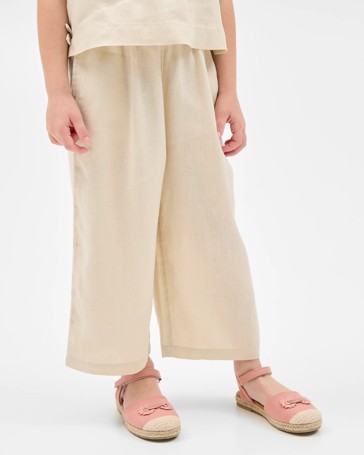 Embroidered Hem Cropped Wide Leg Chambray Pants