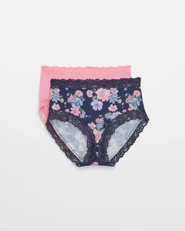 2 Pack Smooth Touch Lace Bonded Waist Midi Briefs