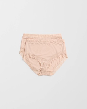 2 Pack Smooth Touch Lace Bonded Waist Full Briefs