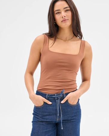 Australian Cotton Double Layer Square Neck Tank Top - Lily Loves