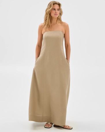 Australian Cotton Pleat Scoop Neck Maxi Dress