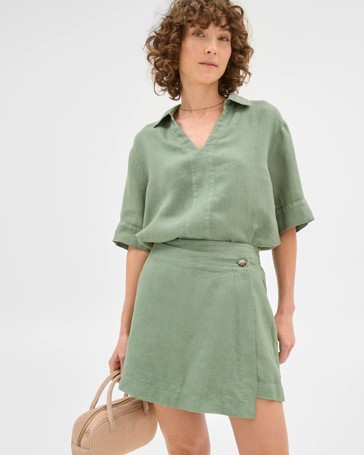 European Linen Blend Halter Wrap Front Top - Lily Loves