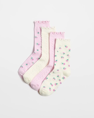 Australian Cotton Blend Crew Cut Floral/Textured Socks 4 Pack - Max