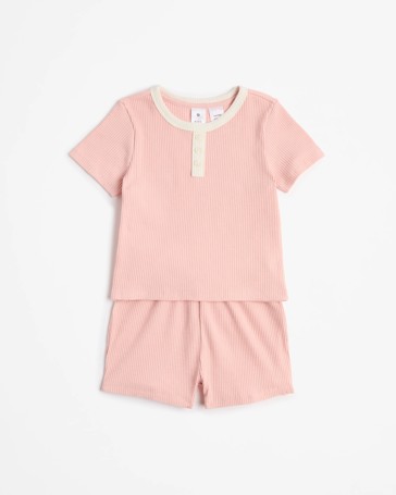 Younger Girls Henley Slub Rib Knit Pajama Set