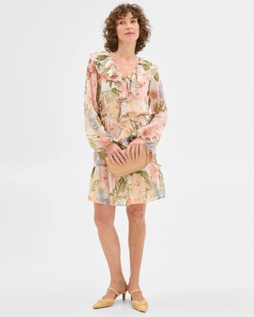 Long Sleeve Ruffle Detail Mini Dress - Preview