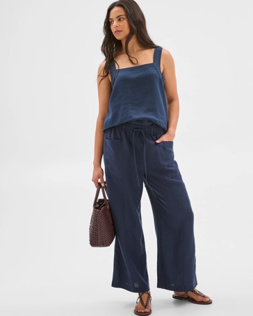 Petites Australian Cotton Blend Twill Wide Leg Pants