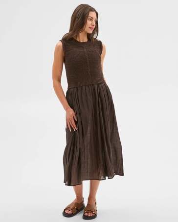 Petites Knit Woven Dress