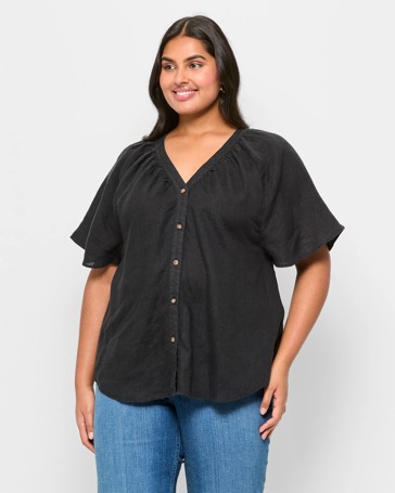 Plus Size European Linen Flutter Sleeve Top