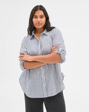Plus Size Poplin Long Sleeve Blouse