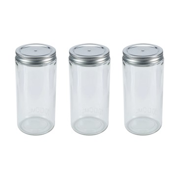 Set of 3 Linear Glass Canisters with Acacia Lids - Anko