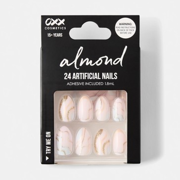 24 Pack Artificial Nails with Adhesive, Almond Shape, Mermaid - OXX Cosmetics