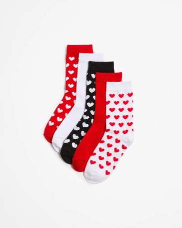 Girls Hearts Patterned Crew Socks 5 Pack - Maxx