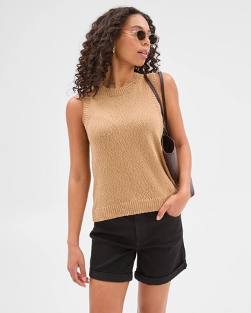 Australian Cotton Blend Boucle Roll Trim Knit Top