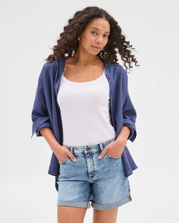 Australian Cotton Roll Cuff Slouchy T-Shirt