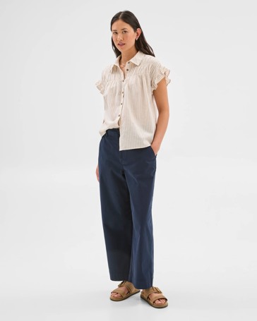 Linen/Cotton Blend Ruffle Sleeve Blouse