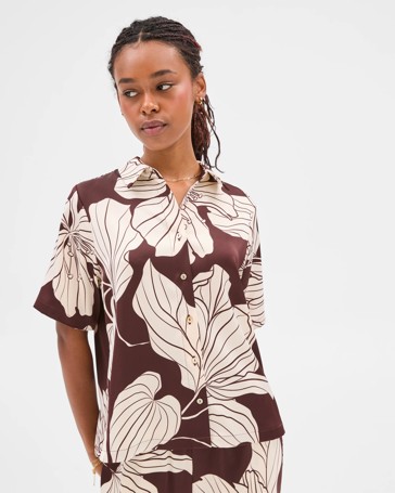 Womens Linen Blend Shorts and Shirt Pyjama Set