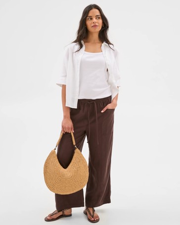 Preview Linen Blend Barrel Leg Pants