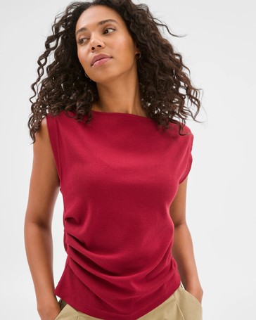 Ribbed Boat Neck Gathered Side Top